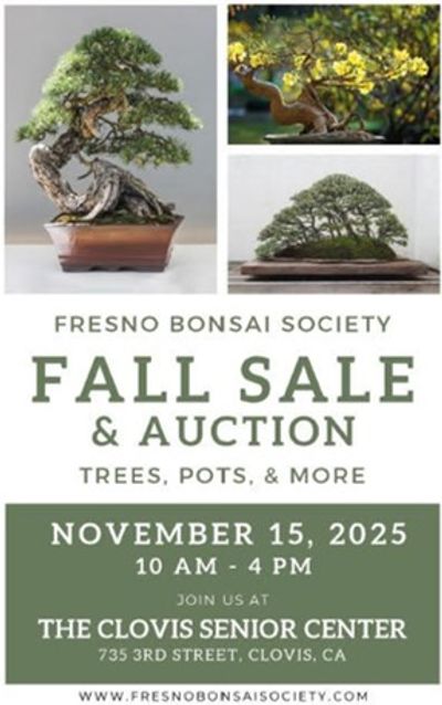 The auction portion of the event will showcase some of the most impressive, fully developed, show-ready trees, with starting bids designed to accommodate all budgets. This is an excellent chance to acquire a one-of-a-kind bonsai while supporting the Fresno Bonsai Society’s ongoing efforts to promote the art and culture of bonsai within the community.
